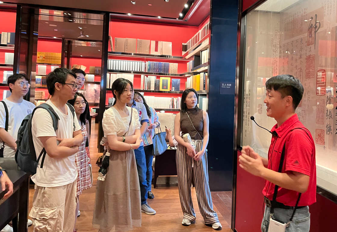 雅昌(深圳)艺术中心,以“服务专业,公益大众”为宗旨,为艺术专业人群、藏家及资深艺术爱好者带来专业文献书籍、艺术展览和艺术课程,以丰富的内容、展览和活动体验,为大众带来公益性艺术普及教育与欣赏,全面提升全民艺术品位和修养。在本次参观中,志愿者们有幸参观了艺术中心的多个展区,包括世界最大艺术书墙、博物馆式的艺术图书馆、中国艺术书区、世界艺术书区、美术馆等。以书为媒,以物为介,每一件精美的作品都用其独特的艺术语言,向志愿者们诉说着不同的故事和情感。通过导览员的细致讲解,志愿者们参观认识了馆藏图书、名家画作等丰富展品及其背后的故事,对出版物有了更深入的认识,充分感受到了雅昌对艺术的极致追求,大家在网红台阶书墙合影,记录下美好时光。